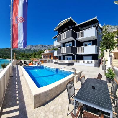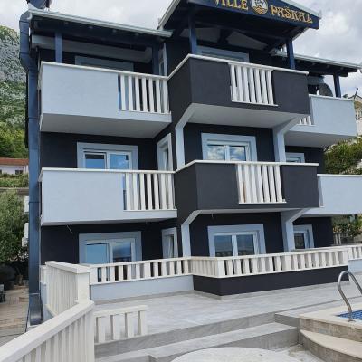 Paškal Villa is located on a beautiful pebble beach in Zaostrog. The house is situated on a hill and through it has balconies and terraces overlooking the sea. The facility consists of two parts - Villa A and Villa B, which are placed one behind the other and are available by stairs, so the object is not suitable for people with mobility limitations. In the vicinity are many bays with beautiful pebble beaches and a gradual approach to the sea, which is perfect for families with small children. The house has a swimming pool with terrace. In the center there are shops, restaurants and post office and the distance from the town of Makarska is about 35 km.