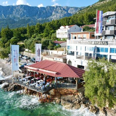 The restaurant has 50 seats indoor and 50 seats on the outdoor terrace, which cascade extends to the west and south side of the hotel, in the shade of pine and laurel, where the meal you can enjoy the scents and colors of summer. In addition to the atmosphere, you can feel Dalmatia and our offer of Dalmatian and Mediterranean dishes in which we specialize. Our excellent cuisine is complemented by offering a variety of local wines from all over the Croatia.